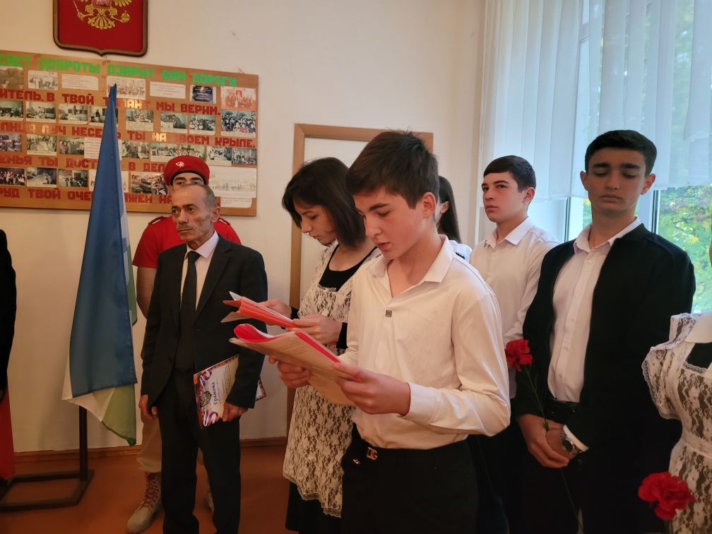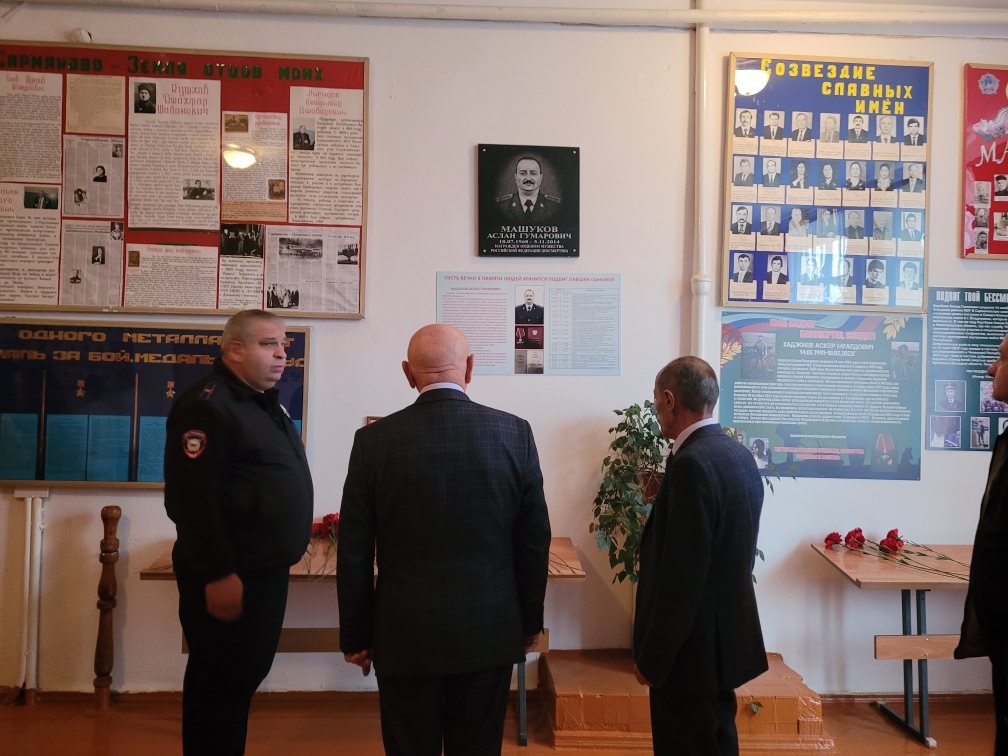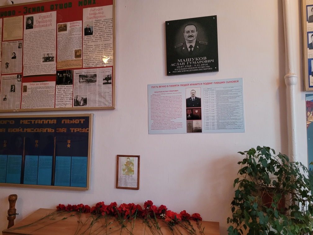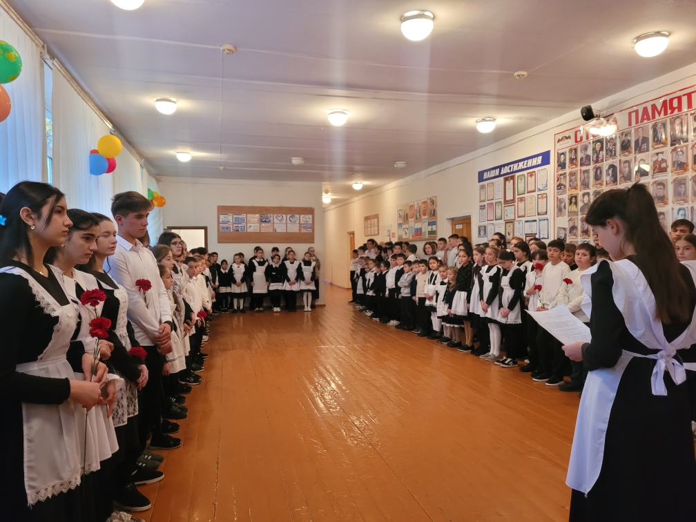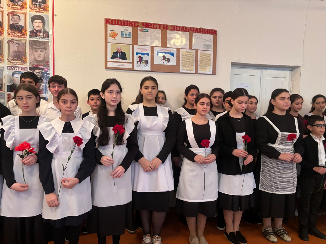 ![]() В эти дни народ Кабардино-Балкарии отмечает одну из трагических дат своей истории – 20 лет прошло со дня вооруженного нападения террористов на Нальчик, в результате которого погибли 35 сотрудников правоохранительных органов и 14 мирных граждан. В целях патриотического воспитания учащихся, воспитания мужества, ответственности, любви к Родине, гордости за достойные действия сотрудников правоохранительных органов при исполнении служебного долга, 13 октября в школе проведены мероприятия, приуроченные к 20-й годовщине трагических событий 13 – 14 октября 2005 года в г. Нальчик: - урок памяти жертвам, погибшим в теракте «13 октября 2005 г.- трагедия для жителей родной Кабардино-Балкарии», «Мы против террора!», «Терроризму и экстремизму скажем – НЕТ!», «День памяти и скорби» (1-11кл.); - просмотр документального фильма «Мы против террора» (8-11кл.); - выставка рисунков и плакатов «Терроризму и экстремизму НЕТ!», - выставка книг на тему: «Мы за мир и согласие!». На классных часах вспомнили жертв этой чудовищной акции, отдали дань глубокого уважения мужеству и стойкости сотрудников правоохранительных органов, ценой собственной жизни защитивших будущее республики. На УРОК ПАМЯТИ приглашены: родственники Машукова А.Г., Хаджиева А.М., Кертбиева Х.Г., Махова М.Б., заместитель главы местной администрации села Виндижев С.Г., ст. инспектор ПДН по Зольскому району Калов М. Х., председатель общественного совета при ОМВД Зольского муниципального района КБР, председатель союза пенсионеров Зольского района Урусмамбетов Ш.Н. Аслан Машуков погиб от вооруженного нападения бандитов в 2014 году в Нальчике. Награжден орденом Мужества посмертно. Выпускнику нашей школы открыта мемориальная плита в Уголке Боевой Славы. Здесь проходят Уроки Мужества. Аскер Хаджиев, выпускник нашей школы, геройски погиб 10 февраля 2023 года в бою на Краснолиманском направлении. Похоронен в своем родном селе 26 февраля. НАГРАЖДЕН ОРДЕНОМ МУЖЕСТВА (ПОСМЕРНО). Кертбиев Хамид, выпускник нашей школы, геройски погиб 22 февраля 2023г. НАГРАЖДЕН ОРДЕНОМ МУЖЕСТВА (ПОСМЕРНО). Махов Мухамед, выпускник нашей школы, геройски погиб 18 сентября 2024г. НАГРАЖДЕН ОРДЕНОМ МУЖЕСТВА (ПОСМЕРНО). Ведущие члены ученического самоуправления Хаджиева Саният, учащаяся 10 класса и Машуков Роман, учащийся 8 Б класса, рассказали о выпускниках нашей школы: погибшем от рук террористов в 2014 году Машукове Аслане Гумаровиче, погибших в ходе специальной военной операции Хаджиеве Аскере, Махове Мухамеде, Кертбиеве Хамиде и Культурбаеве Джабраиле. Герои награждены ОРДЕНОМ МУЖЕСТВА (ПОСМЕРНО) На линейке выступили Урусмамбетов Ш.Н., Виндижев С.Г., Калов М.Х., директор школы Х. З. Калов, заместитель директора Ф.Д. Пилова, советник директора по воспитанию Тохова Л.З. Ведущие назвали поименно погибших сотрудников правоохранительных органов Гонгапшев Арсен Мусаевич, 25 лет, прапорщик Хавпачев Аслан Урусбиевич, прапорщик Шомахов Тимур Каральбиевич, старший лейтенант,24г г Шебзухов Беслан Хаутиевич, старший лейтенант, 26 лет Ногеров Рашид Магомедович, старший лейтенант, 25 лет Корчагин Иван Павлович, младший сержант, 23 года Торосян Андрей Владимирови, рядовой, 21 год Шогенов Анзор Олегович, рядовой, 22 года Хлопов Сергей Владимирович, прапорщик, 30 лет Хажнагоев Заурбек Мухамедович, старший лейтенант, 29 лет Нурсахатов Джумангельды Ходжагельдыевич, май